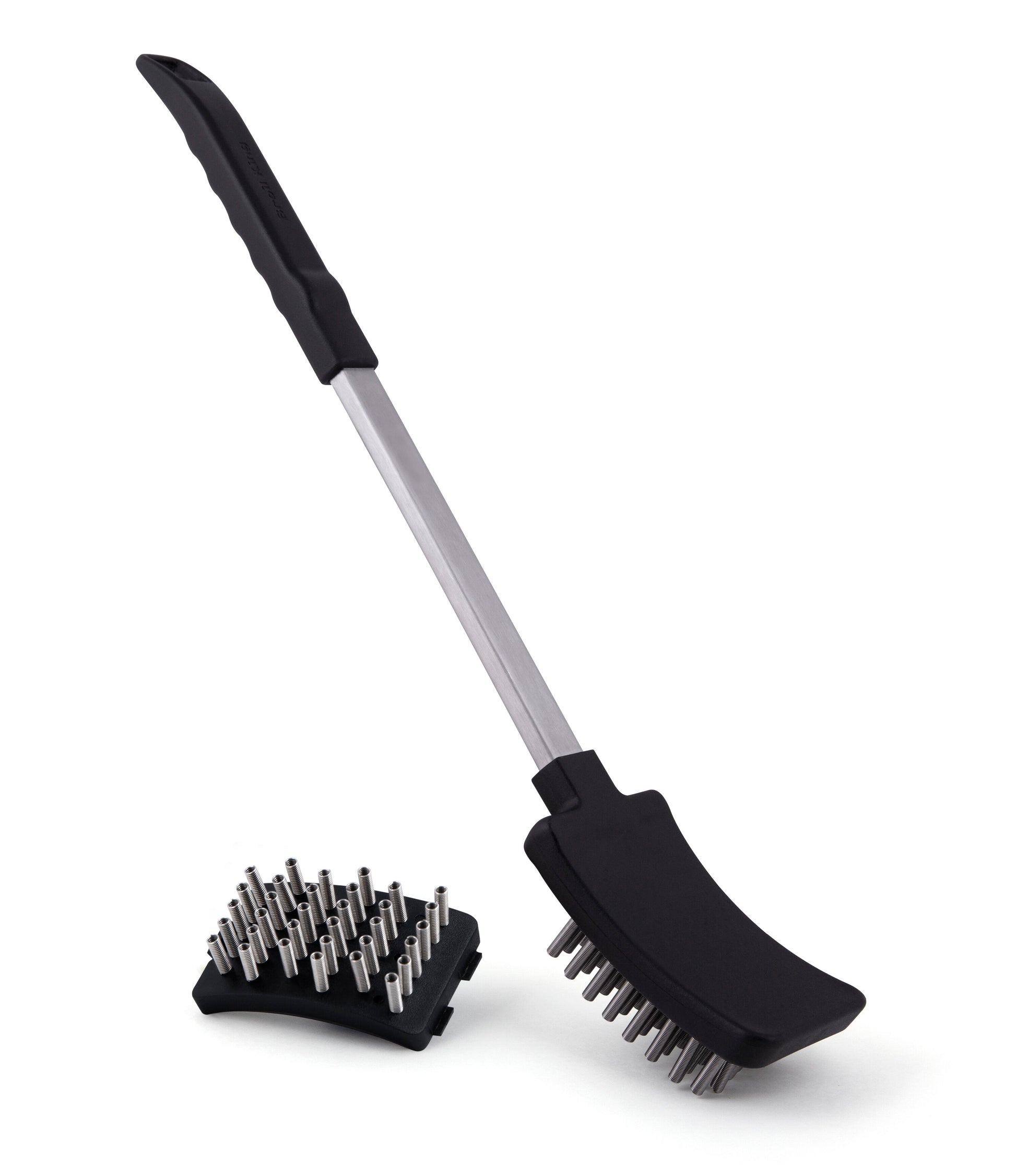 Les ressorts hélicoïdaux en acier inoxydable durables se déplacent indépendamment pour éliminer efficacement les résidus alimentaires pour un nettoyage optimal de la grille. Cette brosse pour gril à ressort en acier inoxydable est livrée avec une tête de rechange.