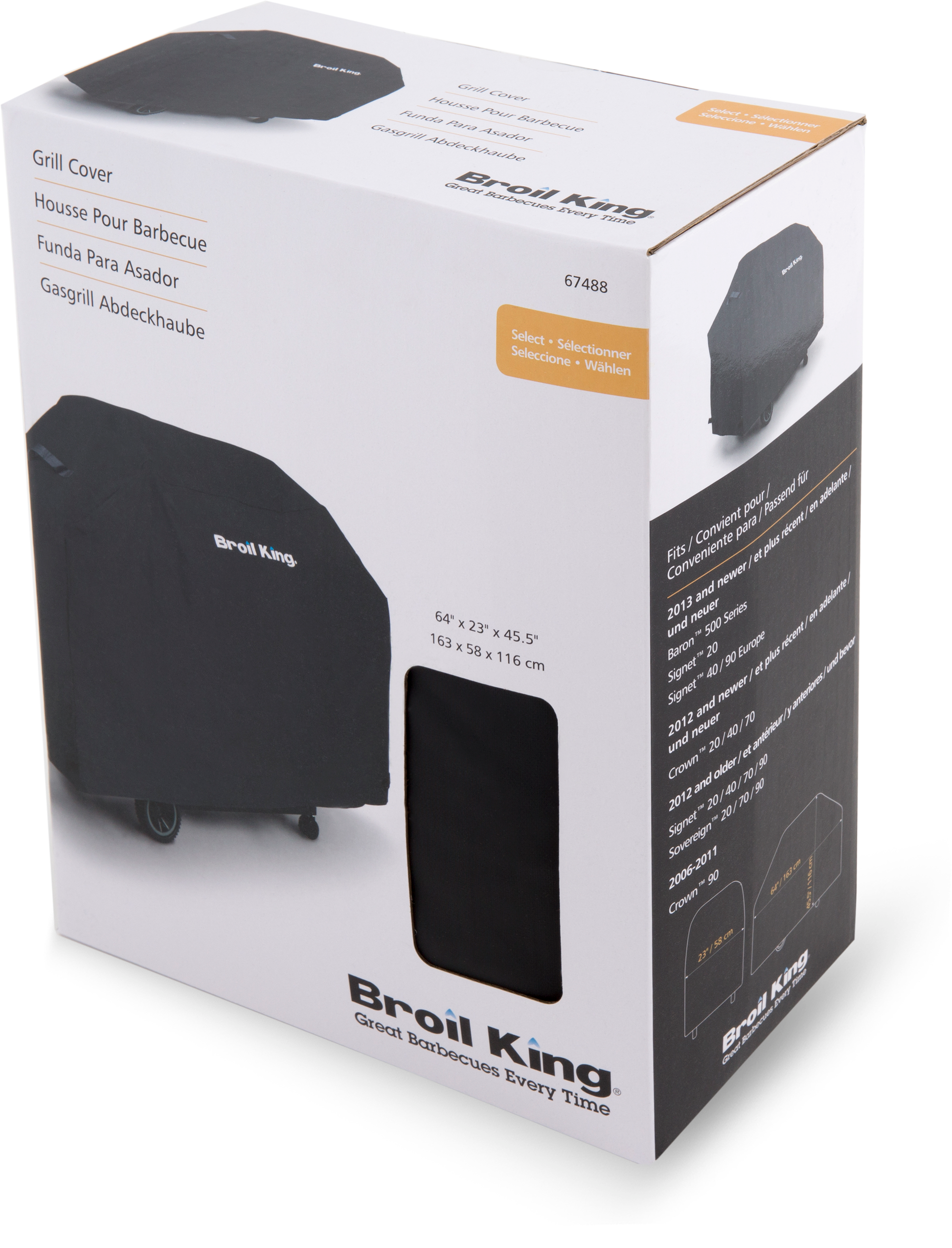 Protect your investment with the Broil King 64 in. select grill cover. Constructed of weather resistant PVC, this cover is engineered to protect your gas grill to enjoy for the years to come. Additional features polyester handles for easy moving, hook and loop tabs to secure the cover around the grill and a hanging loops for convenient storage.