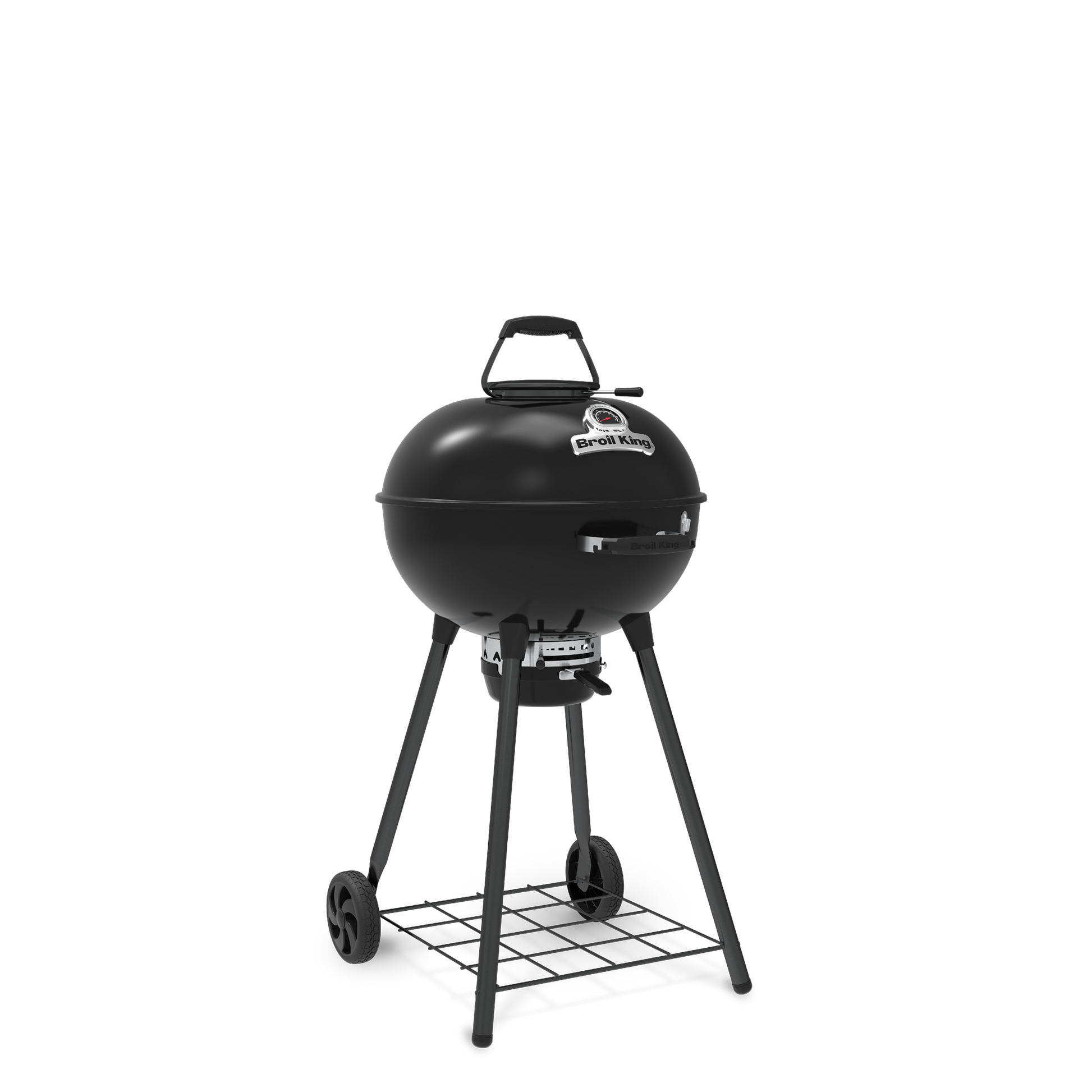 The Crown Kettle Charcoal Grill combines classic kettle-style grilling with durable Broil King design. Featuring a stainless steel Do More™ cooking grid, adjustable stainless steel Rotodraft™ bottom vent, and rust-resistant aluminum damper, it offers precise temperature control for everything from slow cooking to high-heat grilling. A removable clip-in ash tray makes cleanup easy, while the ergonomic handle includes built-in tool hooks and a bottle opener for added convenience. Steel legs with cast aluminum joints provide stability, durable all-weather wheels improve mobility, and a built-in thermometer lets you monitor cooking temperatures at a glance.