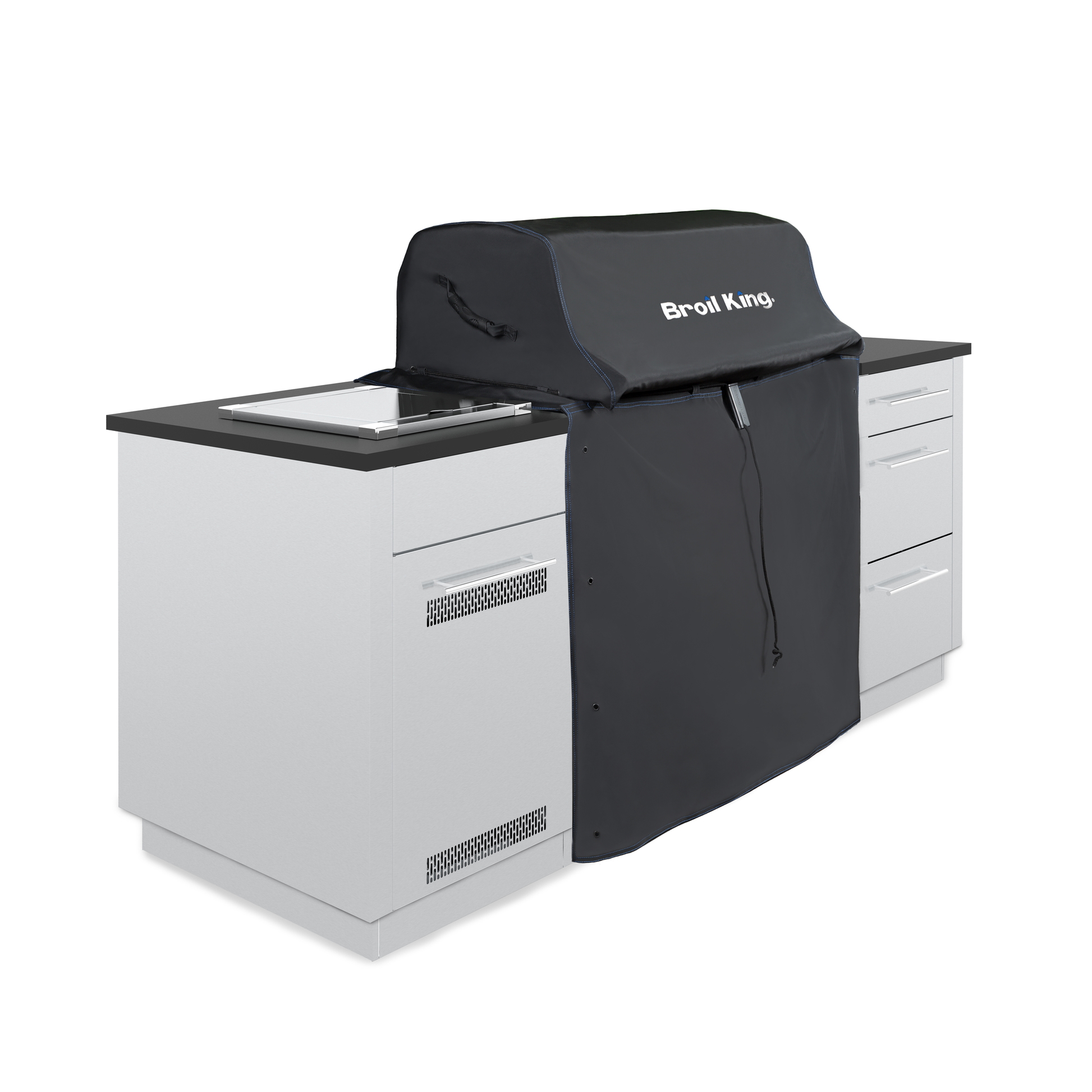 Protect your investment with the Broil King Premium grill cover. Featuring water resistant PVC with a heavy woven 900D polyester backing, this cover will stand up to the elements and keep your grill looking like new. Premium features including hook-and-loop closures, molded rubber handles, and hanging loops add functionality to the grill cover. Blue accent stitching and an embroidered Broil King logo ensure your grill looks good even with the cover on. Backed by a 5-Year limited warranty, this grill cover will perform season after season and ensure that your grill is always ready for the next cookout.
