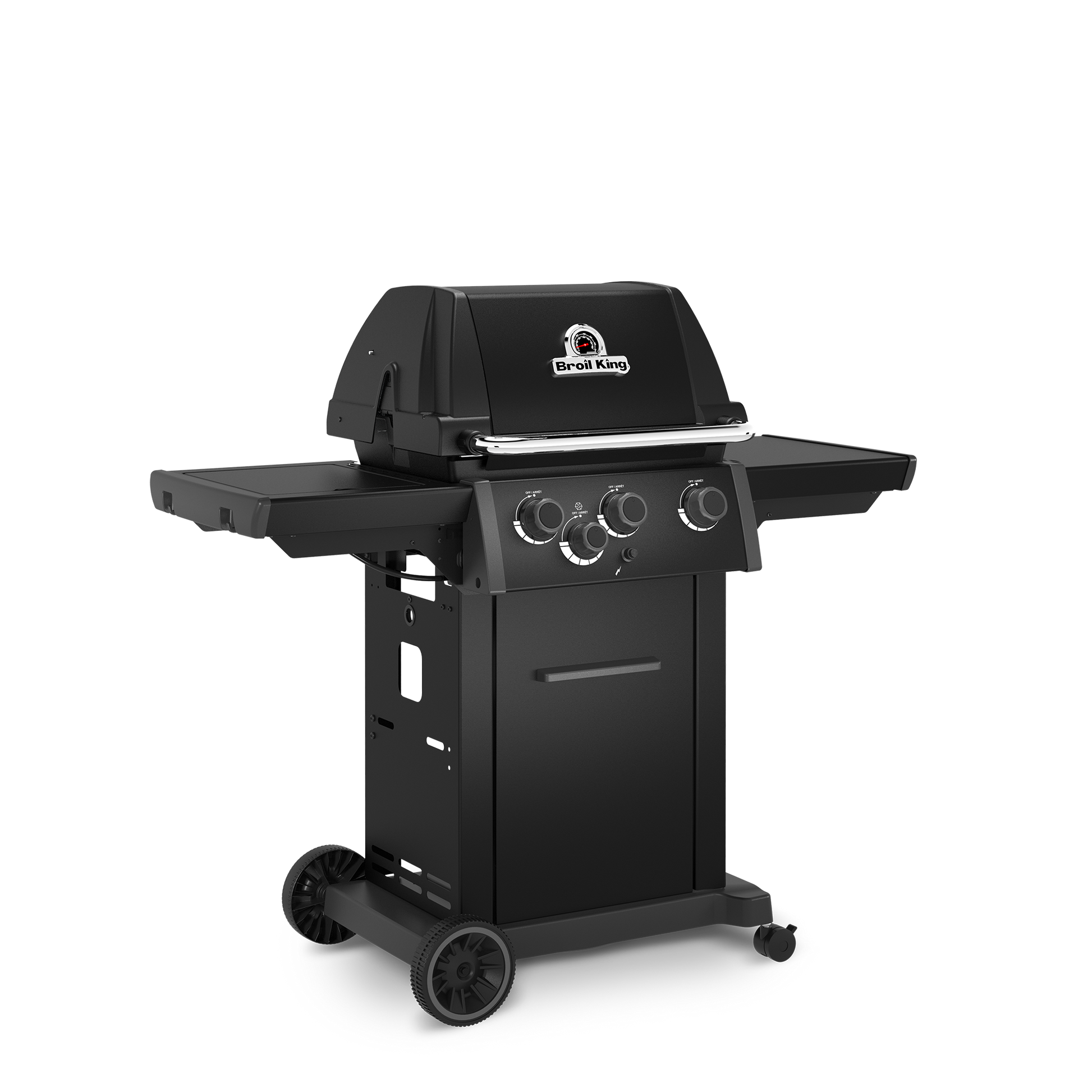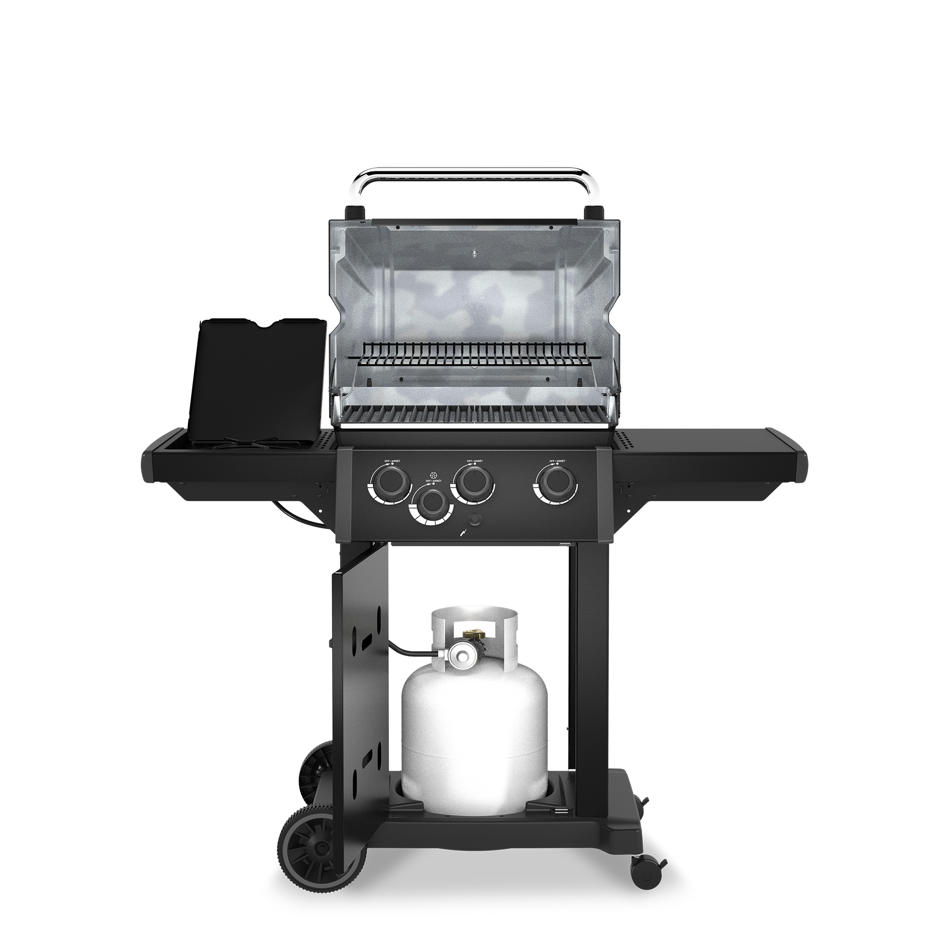 The Royal™ 340 features 335 sq. in. primary cooking surface and includes 3 stainless steel Dual-Tube™ burners, reversible heavy-duty cast iron cooking grids, stainless steel Flav-R-Wave™ cooking system, and electronic ignition.